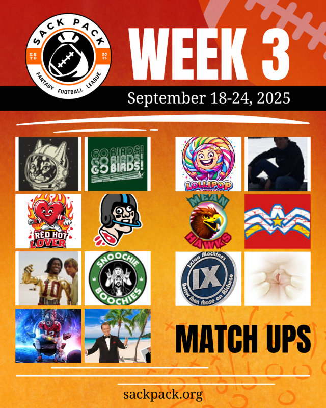 After a Week 2 filled with upsets, heartbreakers, and Yahoo projections that aged worse than milk in the sun, the Sack Pack turns the page to Week 3. Matchups are heating up, rivalries are brewing, and some teams already look desperate for redemption.